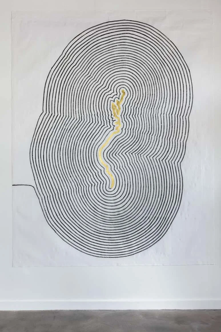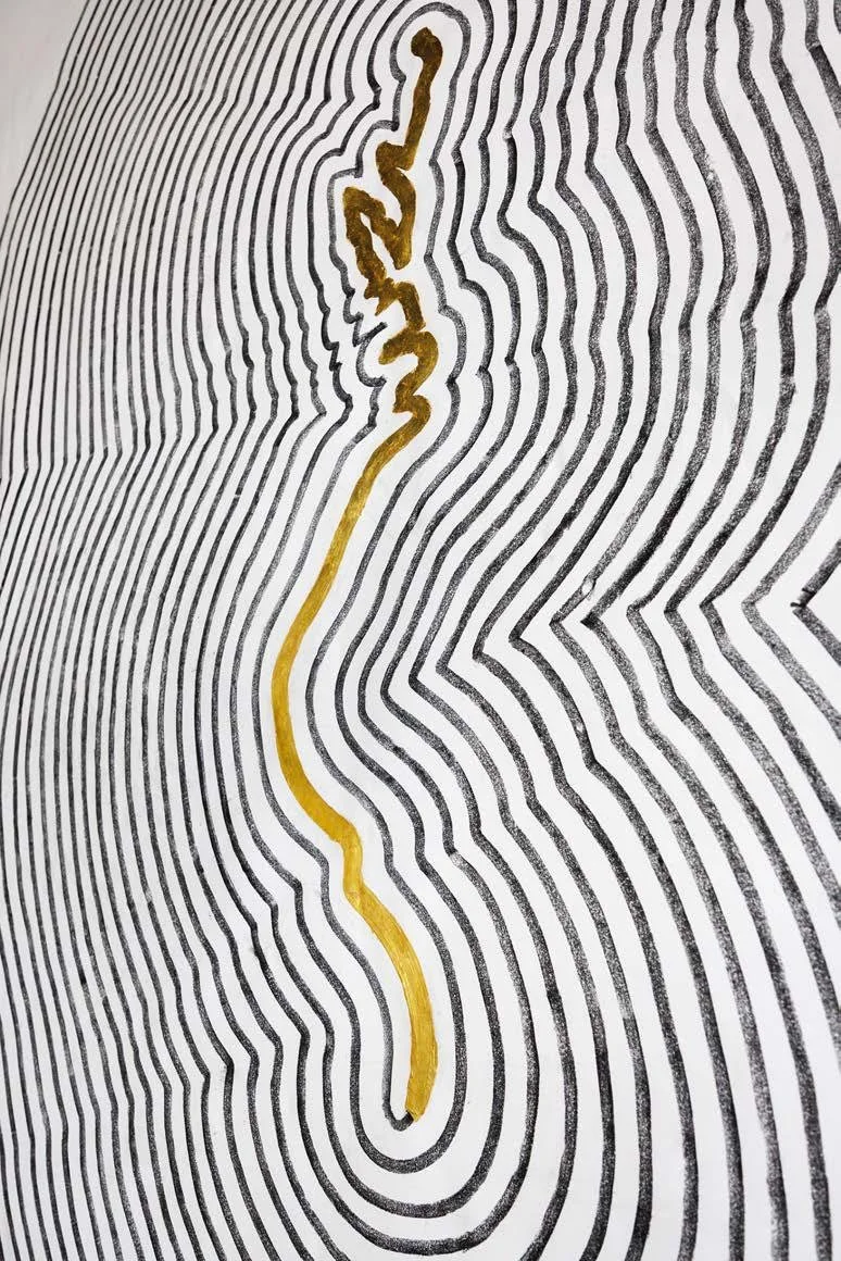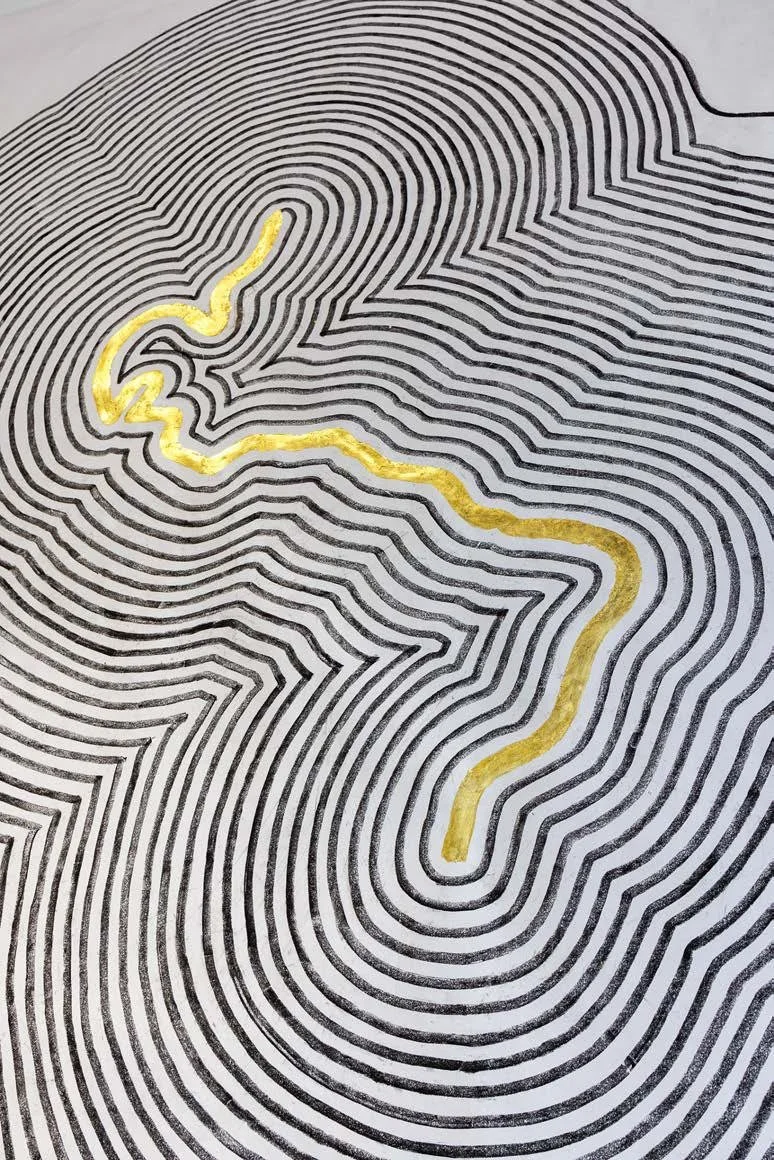 WaterLINE: NYC-Miami, 2025, charcoal on paper, gold leaf, 107”x 87”