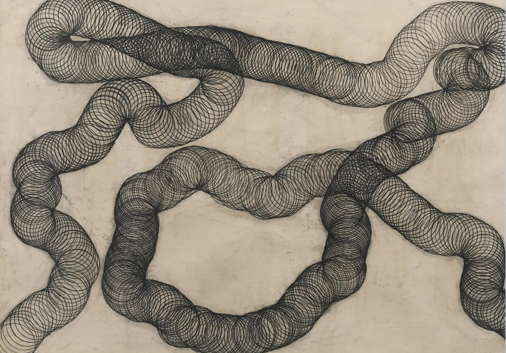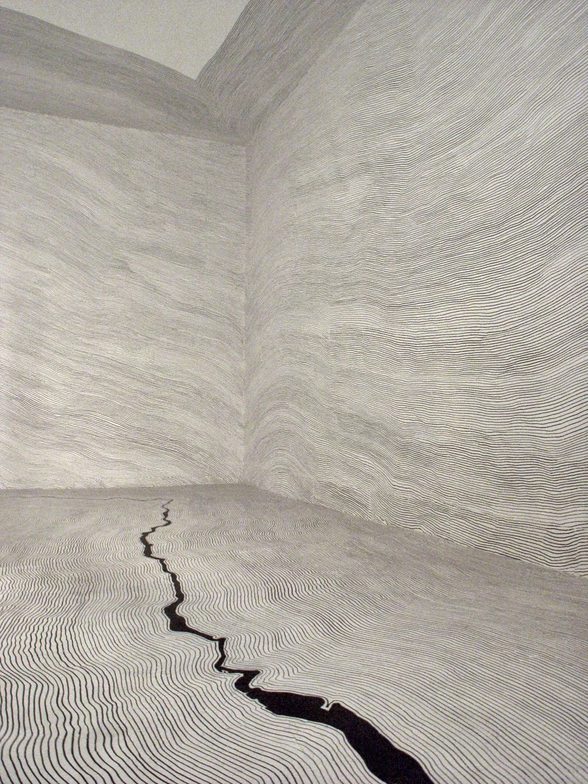 Drawing Environment, 75 days; a single continuous line 17 miles in length, made with 1/4” black masking tape.